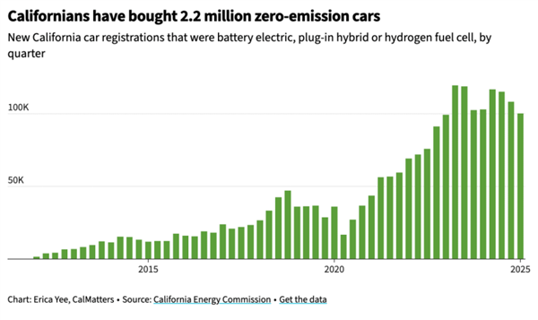 加州亦然好意思国最大的电动车市集,领有好意思国最完善的充电集合,迄今依然占据好意思国电动车总寄托量的三分之一。