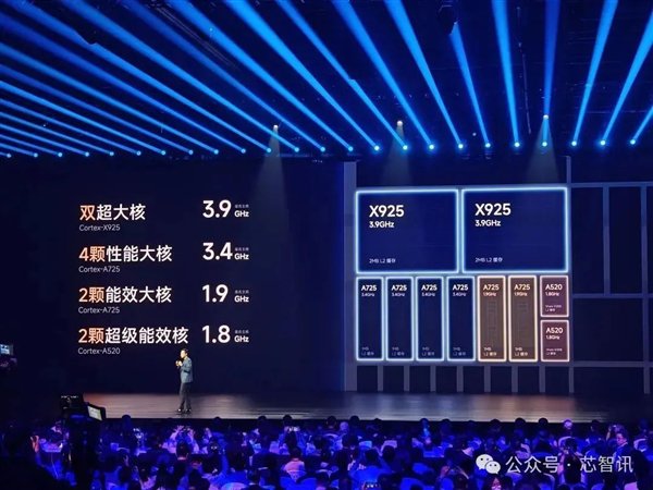 Arm在发布Cortex-X925超大核时公布的信息是,该CPU内核主频最高可达3.8GHz(旧例为3.6GHz),而玄戒O1公布的Cortex-X925超大核之则终了高达3.9GHz的主频,这恰是收获于小米自研的旯旮供电技艺、自研圭臬单位(StdCell)和自研高速寄存器的加持。