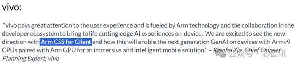 同期,vivo首席芯片狡计人人夏晓菲也暗示:“vivo 相当留意用户体验,在 Arm CSS 的技艺基础之上,咱们与 Arm 的密切和谐,共同鞭策拓荒者生态,使手机更通顺更好用,同期也为确立端带来了前沿的 AI 体验。……”